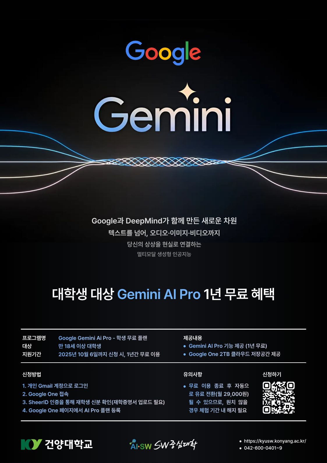 제목 | [안내] Google Gemini AI Pro 대학생 무료 이용 안내 | ||||
