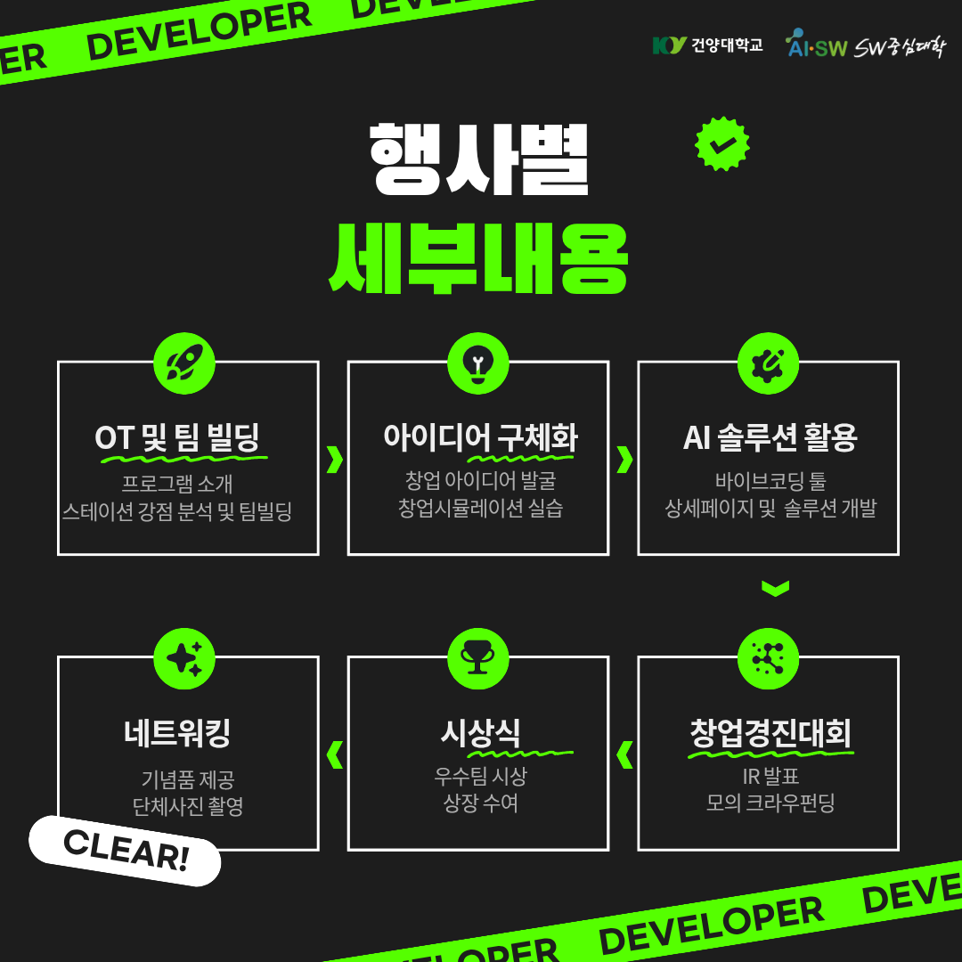 『 창업 아이디어 경진대회 안내 』글의 상세내용을 확인하는 표로 제목, 부서명, 등록일, 조회, 첨부, 내용으로 나뉘어 설명합니다.
